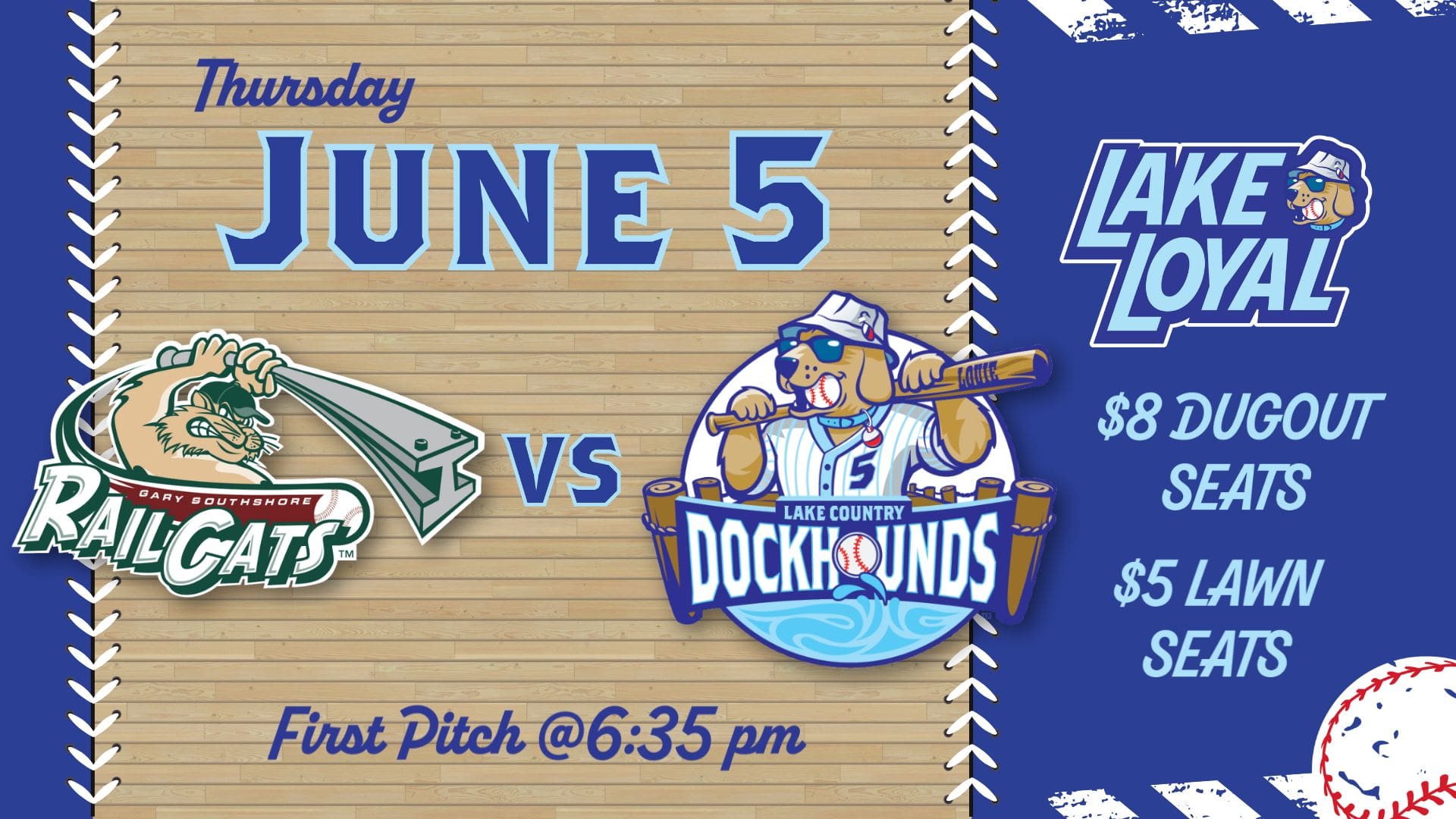 05jun6:35 pmGary SouthShore RailCatsLake Country DockHounds vs Gary SouthShore RailCats6:35 pm Game TypeHome Game
